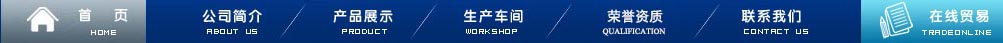 首頁(yè) | 公司簡(jiǎn)介| 產(chǎn)品展示 | 生產(chǎn)車(chē)間 | 營(yíng)銷(xiāo)網(wǎng)絡(luò) | 在線(xiàn)貿(mào)易 | 聯(lián)系我們